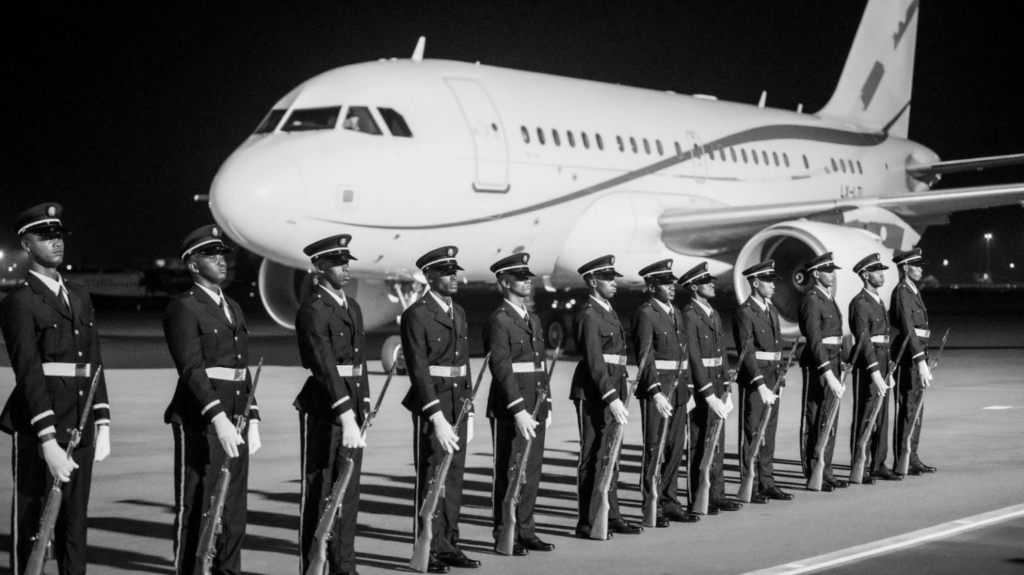 Ku kibuga cy’Indege Mpuzamahanga cya Kigali giherereye i Kanombe yakiriwe na Minisitiri w’Ububanyi n’Amahanga n’Ubutwererane, Amb Oliver Nduhungirehe.
