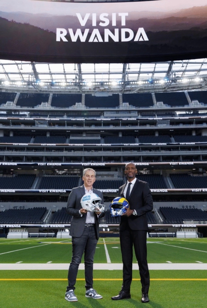 Visit Rwanda yamamajwe ku kibuga cya SoFi Stadium muri California, aho yagaragaye mu mukino wa NFL wahuje Los Angeles Rams na Indianapolis Colts. Nyuma y’uyu mukino, RDB yatangaje amasezerano y’ubufatanye na Los Angeles Rams azamara kugeza mu 2029.